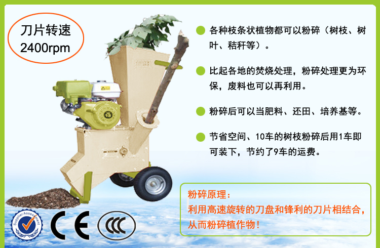 小型移動式汽油版枝條粉碎機